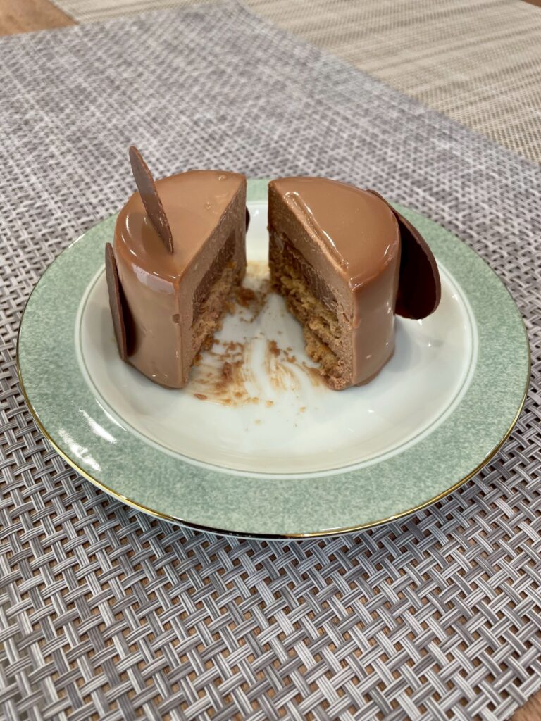 ミルクチョコのムースでしっかりとした甘みがありますが、ゆず風味のミルクチョコガナッシュがチョコと良く合い、ゆずの酸味がアクセントになり濃厚なのに食べやすいケーキでした。